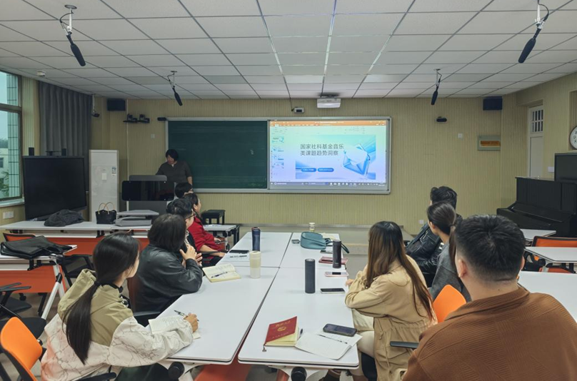 首先,教师代表汇报了在研课题情况,分享了自己的研究思路、立项经验及阶段性成果。教研室老师们围绕研究方法、理论框架等关键问题开展了热烈讨论与交流。随后,声乐教研室主任王明春梳理了近三年国家社科基金音乐类项目的立项数据与总体趋势,分享了当前音乐学领域的研究热点、学科交叉动向及申报策略,为教研室的选题与申报工作提供了参考。
