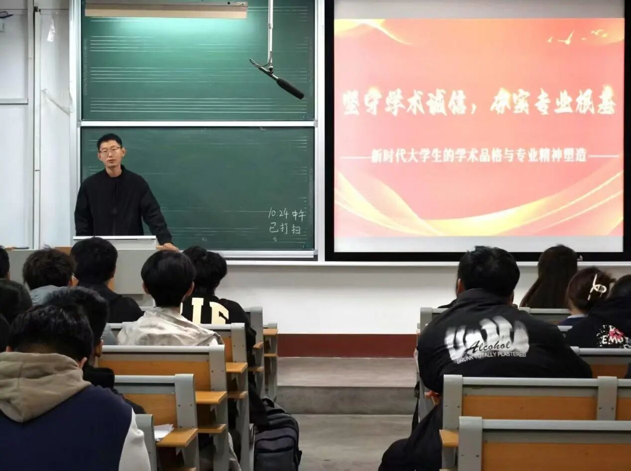 为了塑造新时代大学生恪守真理、追求卓越的学术品格,筑牢同学们行稳致远的人生基石。10月24日,0638太阳集团于9#308举办新时代大学生学术诚信讲座,由学院辅导员王森远担任主讲人,2025级同学们踊跃参与,现场气氛热烈。