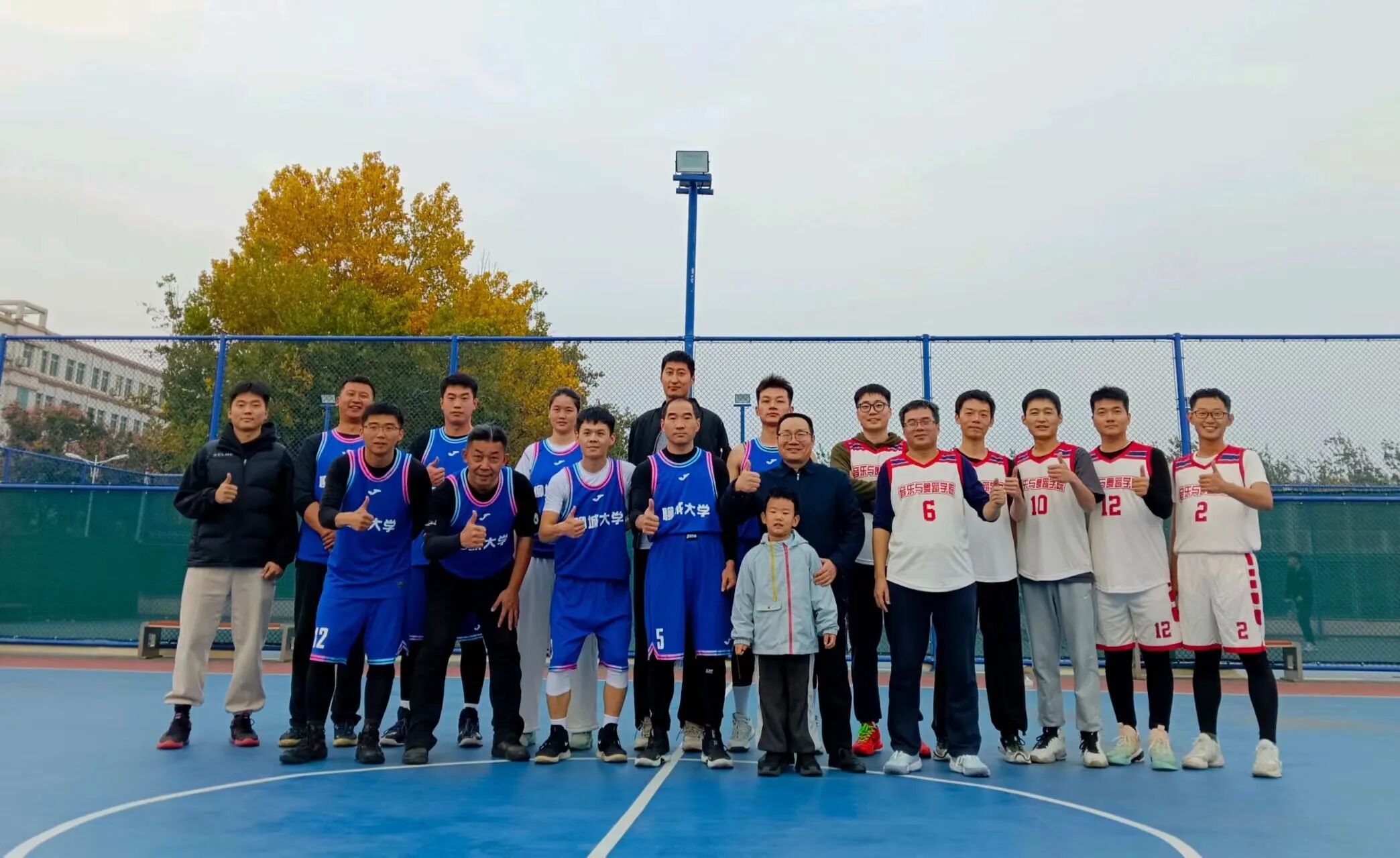 队伍与第二轮对手体育学院男篮合影