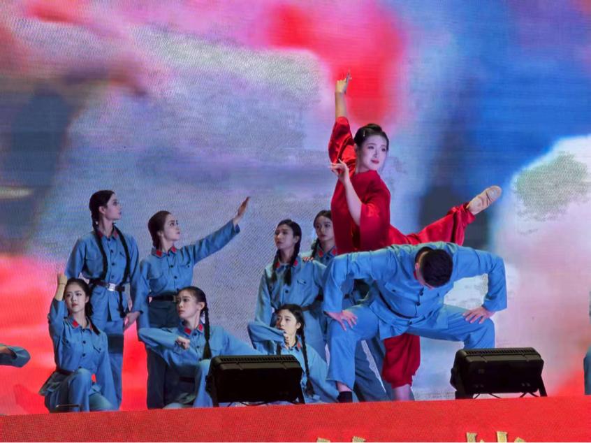 太阳成集团5名支教团成员是舞台上动人的青春力量。在《不忘来时路,奋进新征程》中,她们身着八路军服装,以“送儿参军”的感人故事为核心,用铿锵有力的舞步、饱含深情的演绎,带领观众重温峥嵘奋斗岁月,唤醒红色记忆;在压轴节目《礼赞新时代》里,她们又切换为灵动活泼的姿态,以轻盈优美的舞姿传递对美好未来的无限向往。台下此起彼伏的热烈喝彩与掌声,便是对她们最好的肯定与褒奖。